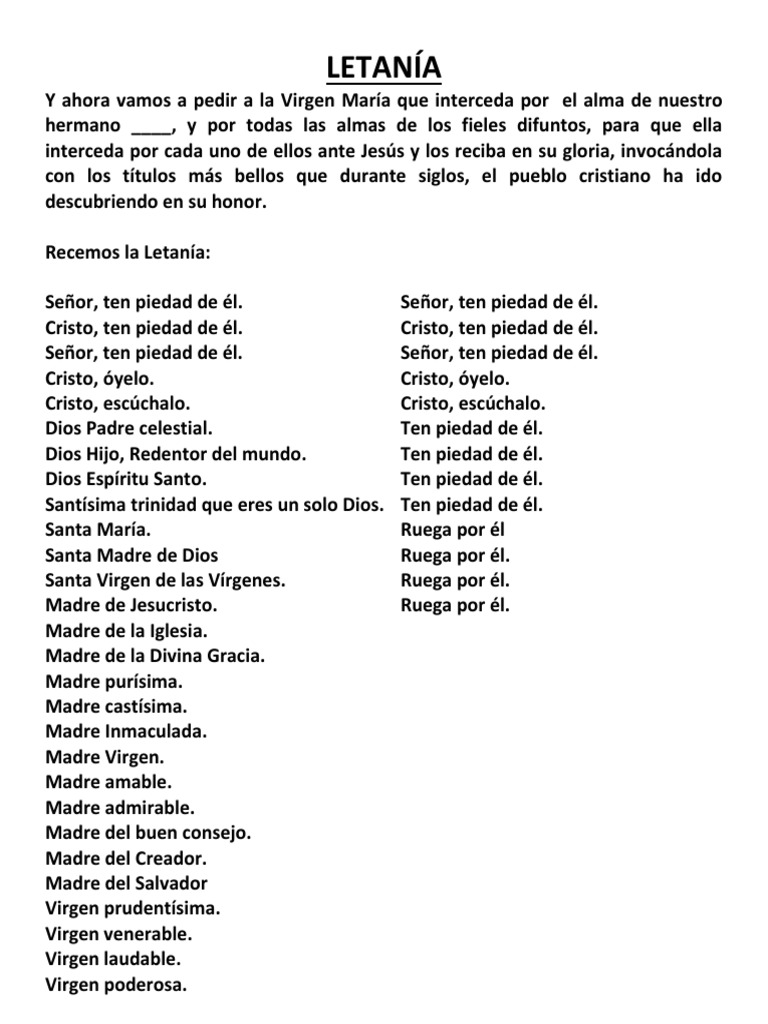 Up to 24 cash back Letanías del rosario para difuntos pdf El Santo Rosario por los difuntos se reza para pedir la intercesión de la Virgen María por una persona fallecida. Up to 24 cash back Por. Up to 24 cash back Este rosario completo para difuntos se reza para pedir la mediación de la Virgen María ante Dios padre por una persona fallecida es prácticamente el rosario que se.